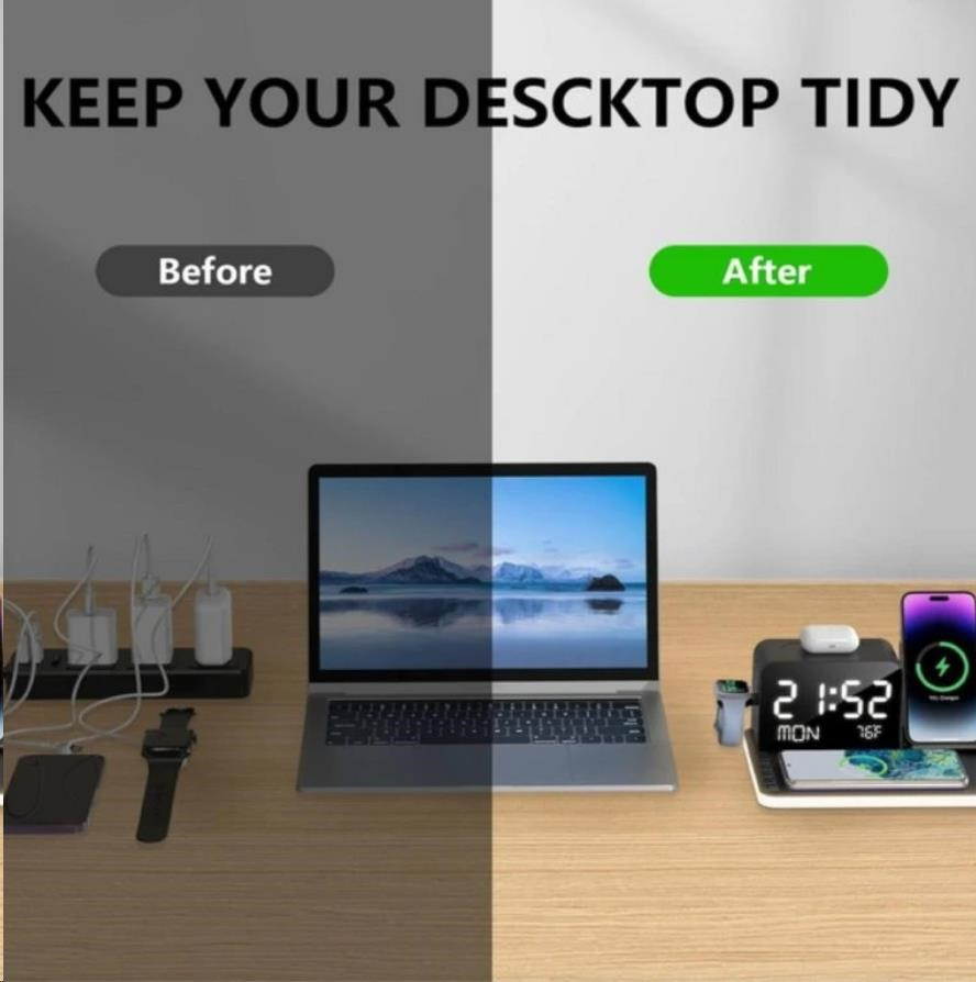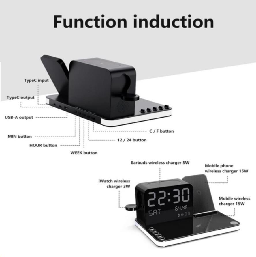 WG Multifunkční zařízení 7v1 (hodiny, datum, teplota, nabíječka telefon+hodinky+sluchátka)