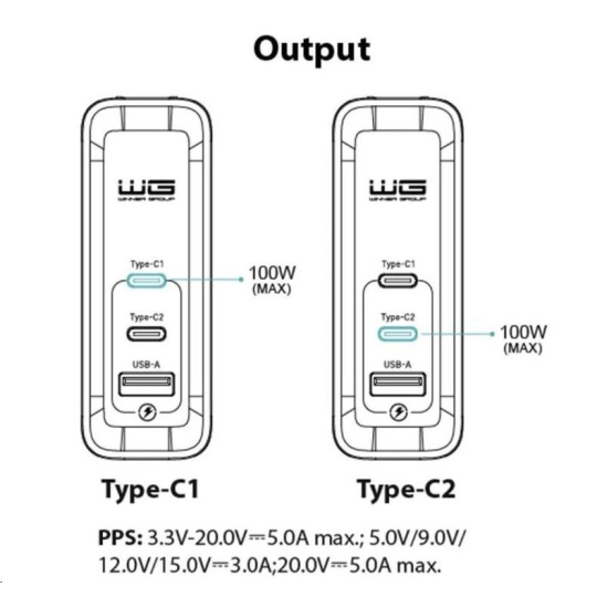 - USB-C1/C2 +USB-A: 5V/9V/12V/15V?3A, 20V?4.35A max (87W+30W)
