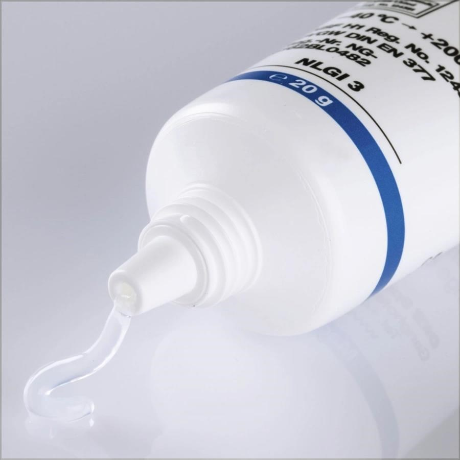 - speciální silikonové mazivo pro použití jako těsnění/ lubrikant v kuchyních, koupelnách, domácnostech a dílnách - pro variace, komponenty a těsnění v plně automatických kávovarech, nádobách na mléko, spojích atd. - může být použit na lubrikaci kuchyňských zařízení jako např. univerzálních kráječů, mixérů, kuchyňských robotů atd. - vhodný i pro studené / teplé vodovodní ventily v sanitárních zařízeních a topení nebo potravinářském průmyslu - vysoká efektivita díky výborné přilnavosti ke všem materiálům - neutrální k plastovým materiálům a elastomerům - konzistentní vlastnosti: nevysychá, neztvrdne a neteče - odolný vůči studené a horké vodě, acetonu, etanolu, ethylen glykolu, glycerinu a metanolu - toxicky nezávadný a testovaný v souladu s německou směrnicí LFGB - nezanechává pach ani chuť - bezpečný při použití s potravinami - testovaný DVGW v souladu s normou DIN EN 377 - vhodný pro teploty v rozsahu od -40 ° C do + 200 ° C - průhledné silikonové mazivo (potravinářská vazelína) - obsah: 20 g - vyrobeno v Německu Informace pro spotřebitele Použití: - důkladně vyčistěte místo, kam chcete přípravek aplikovat - aplikujte rovnoměrně v tenké vrstvě - nenanášejte příliš mnoho maziva Vždy se řiďte pokyny výrobce zařízení. Plastové materiály na bázi silikonu, např. silikonová guma, se mohou částečně rozpustit působením silikonového maziva. Po otevření spotřebujte do 36 měsíců a skladujte při teplotě mezi 0 ° C až + 40 ° C. Releases: NSF H1 reg. no. 124381 beer froth; KTW seals D2 DVGW DIN EN 377 reg. no. NG-5162BL0482.