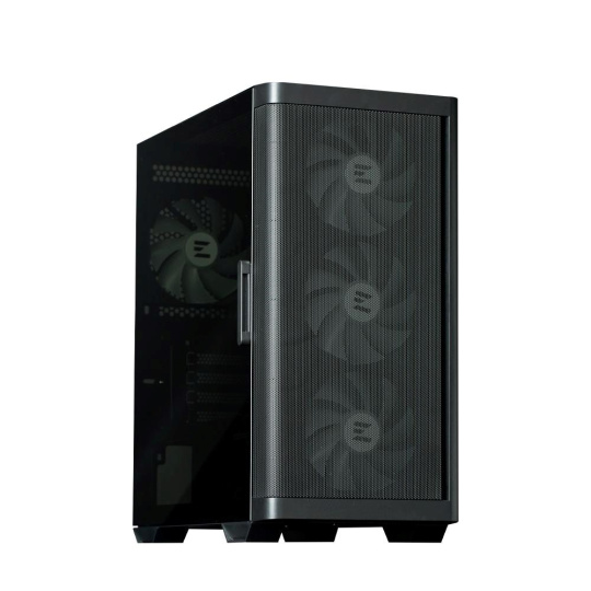 Kompletní přední síťovina pro optimalizované větrání. Jedinečný design Zalmanu propojuje přední síťovinu a tvrzené sklo na bočním panelu.