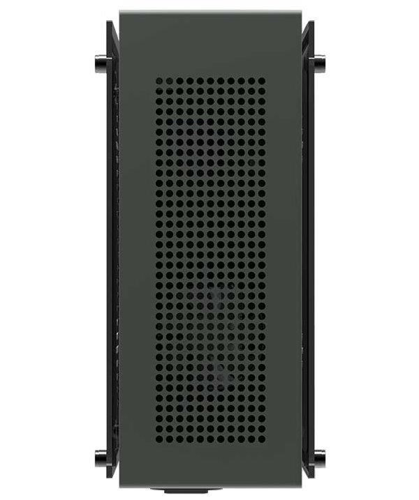 Stylová skříň formátu Mini ITX s bočnicemi z akrylového skla nabízí dvě 2,5" pozice pro SSD disky. Na přední straně se nachází jeden USB 3.0 port a jeden port USB typu C. Ve skříni je dostatek prostoru pro chladič CPU do výšky až 60 mm a grafickou kartu o délce 295 mm. Horní panel lze osadit jedním 80 mm ventilátorem (není součástí balení). Všudypřítomná perforace zajišťuje dostatečné proudění vzduchu a tím i efektivní chlazení. Skříň je dodávána bez zdroje.