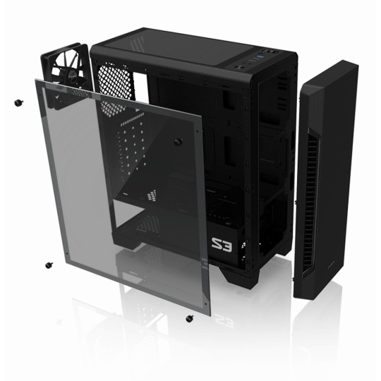 ZALMAN skříň S3 TG, ATX bez zdroje